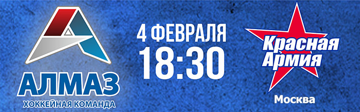 В матче сойдутся ХК "Алмаз" и ХК «Красная Армия» город Москва.